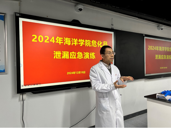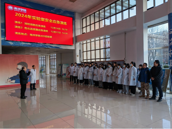 12月18日下午两点半,危化品泄露应急演练在学思楼409实验室进行。此次演练模拟了实验过程中因操作不当导致的危险化学品泄露事故。接到“事故”报告后,学院立即启动应急预案,应急小组迅速响应,第一时间封锁现场,防止泄露扩散。