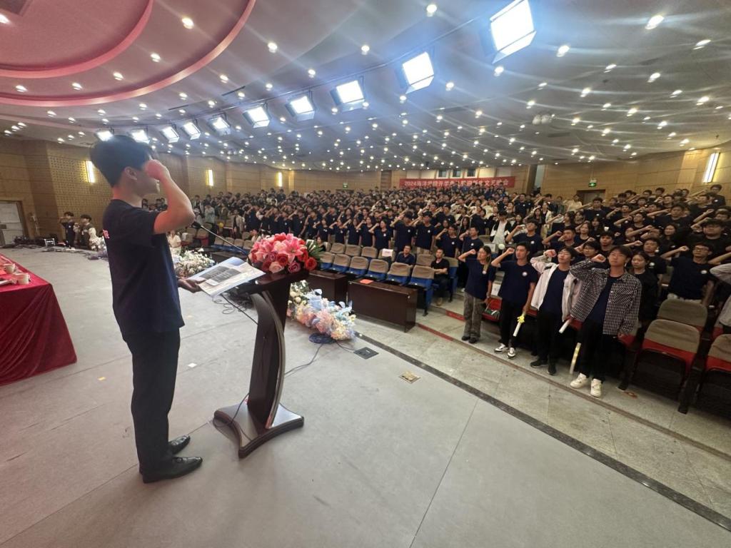 新生代表、2024级海洋资源开发技术(生态工程)专业本科生谢宇乐同学带领2024级全体新生庄严宣誓。同学们高举右拳,气势昂扬的喊出誓言,坚定了山大海洋人的拼搏信念,彰显了全体新生昂扬的精神风貌。相信同学们在未来充实的大学生活中,践行铮铮誓言,勇攀学术高峰,和现场的誓言声一样无比精彩。