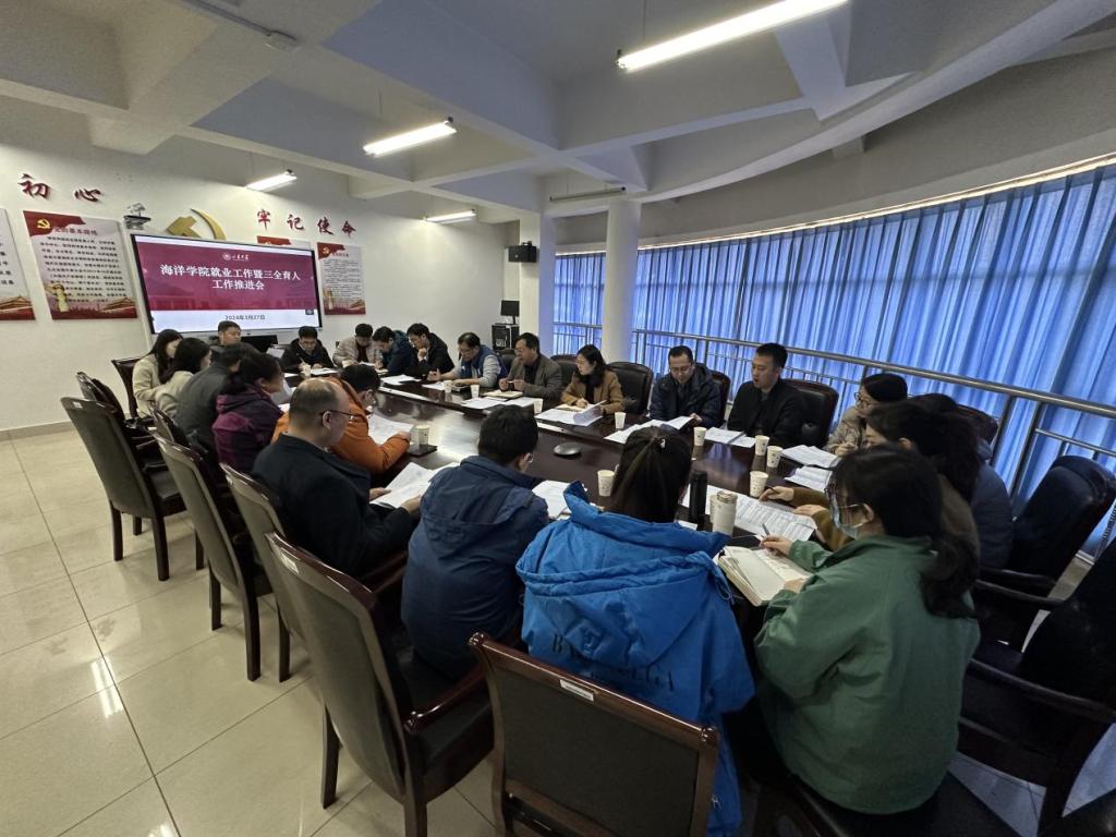 为推动学院就业工作提档升级,提升三全育人工作实效,3月27日,永利3544am登录官网召开就业工作暨三全育人工作推进会,学院领导班子成员、系主任、毕业班班主任、科创教师代表、全体辅导员参加会议。