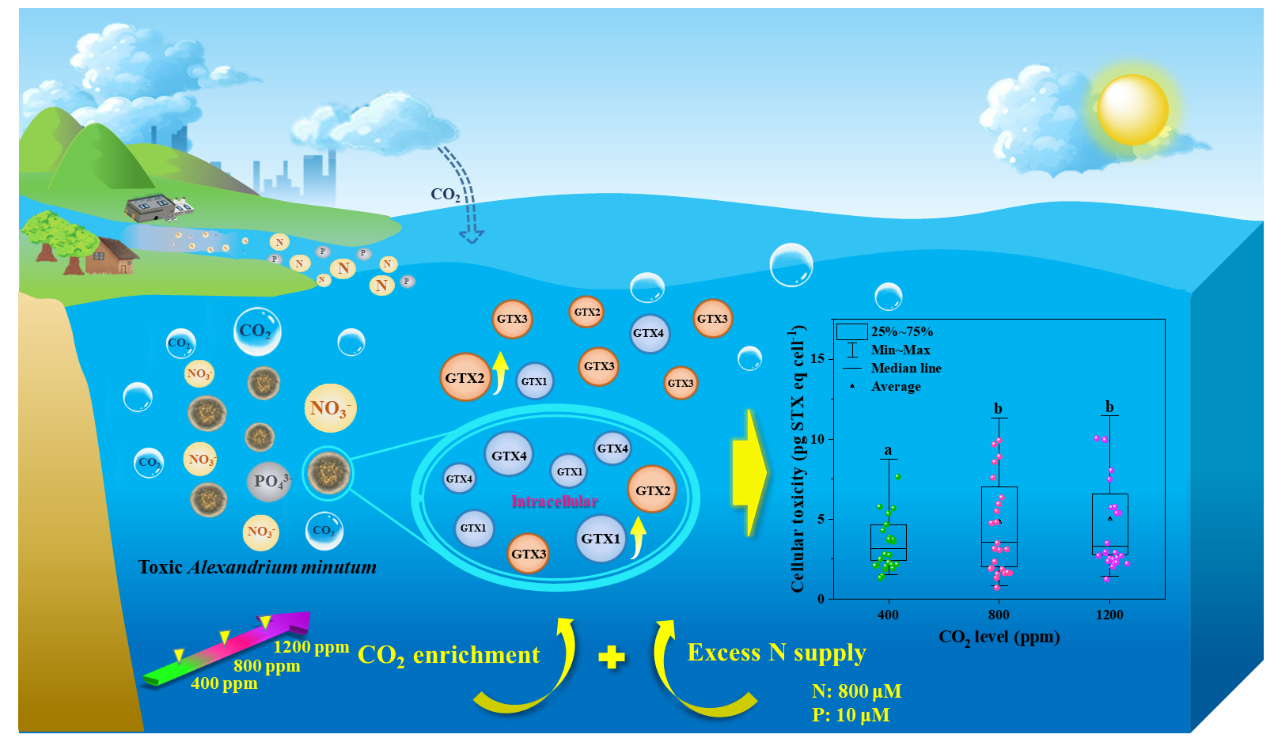 有害藻华是一类突出的海洋生态灾害问题。在近海海域,部分有毒有害微藻会形成有害藻华,直接影响海水养殖业发展、海产品食品安全和海洋生态系统健康。其中,亚历山大藻属中的有毒藻种因其分布广、危害大而备受关注。长期以来,人们一直关注近海氮、磷营养盐加富对有害藻华的影响;近年来,因二氧化碳过量排放导致的海洋酸化对有害藻华的影响也开始受到关注。在未来海洋中,富营养化和海洋酸化等环境变化将如何影响有害藻华的发生及其危害效应,目前的科学认识仍然存在很多不确定性。