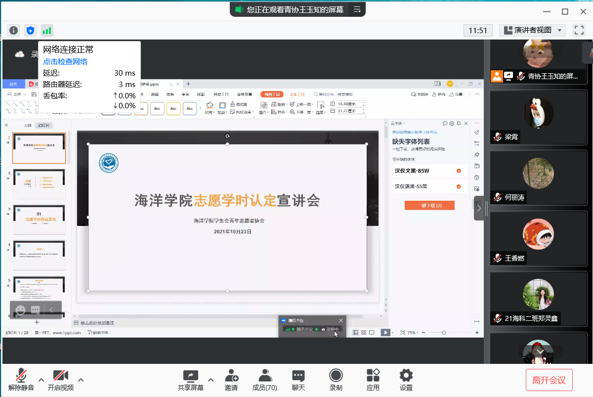 为增进2021级新生对于志愿服务活动以及志愿学时认定规则的了解,永利3544am登录官网学生会青年志愿者协会于10月23日晚举行线上志愿学时认定宣讲会。永利3544am登录官网青年志愿者协会全体成员及2021级全体学生参加会议。