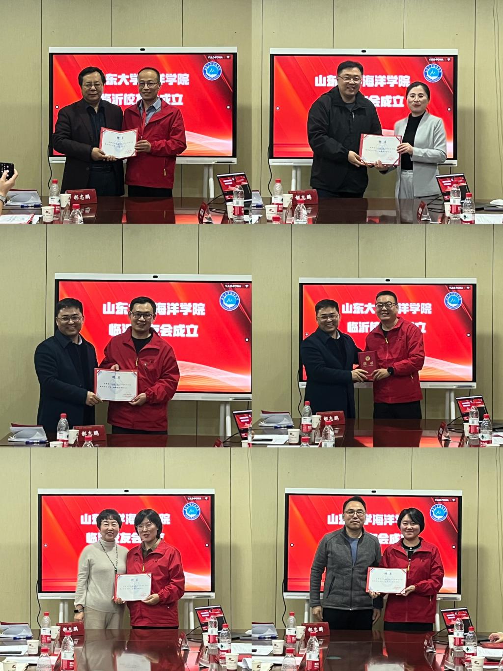 最后,王伟莉、王亮、张伟、牛志强共同为第一届永利3544am登录官网永利3544am登录官网临沂校友会会长、副会长、秘书长、副秘书长颁发聘书。