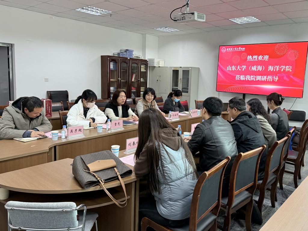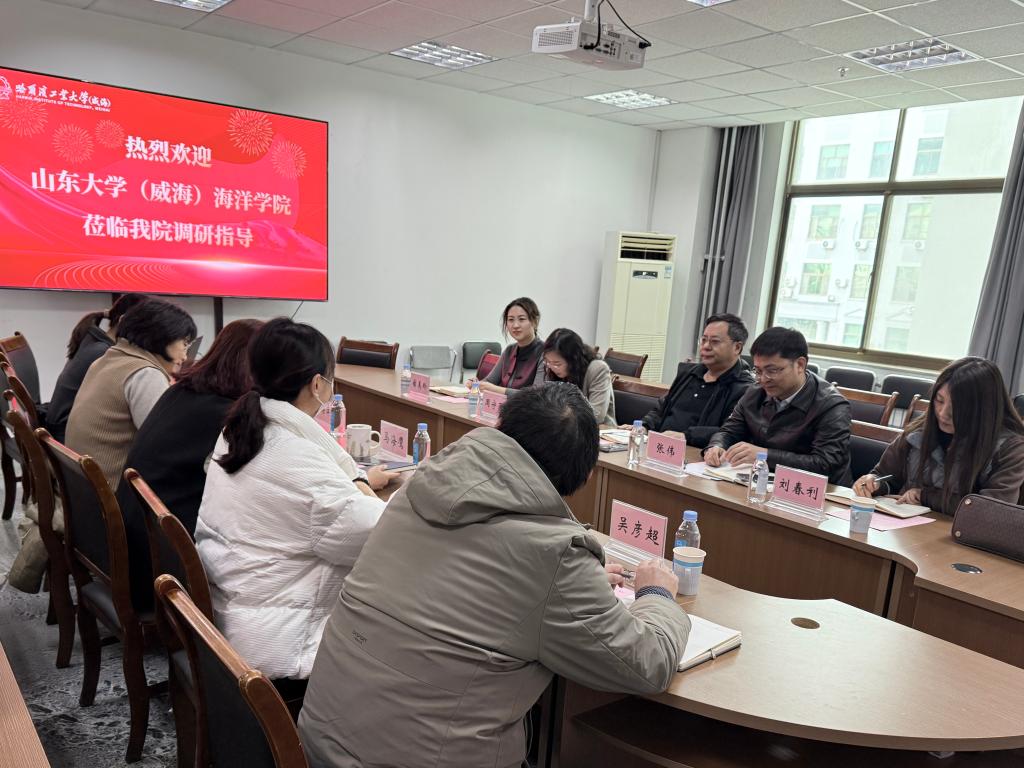 3月19日,永利3544am登录官网党委书记王亮、副院长张伟、副书记周守玉等一行5人到哈尔滨工业大学(威海)海洋科学与技术学院调研交流工作。哈尔滨工业大学(威海)海洋科学与技术学院党委书记马海鹰、副院长刘海萍、党委副书记曹竞等与会座谈交流。