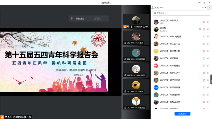 5月2日晚,永利3544am登录官网第十五届五四青年科学报告会通过线上方式举办,学院2021级全体同学参加了本次科学报告会。