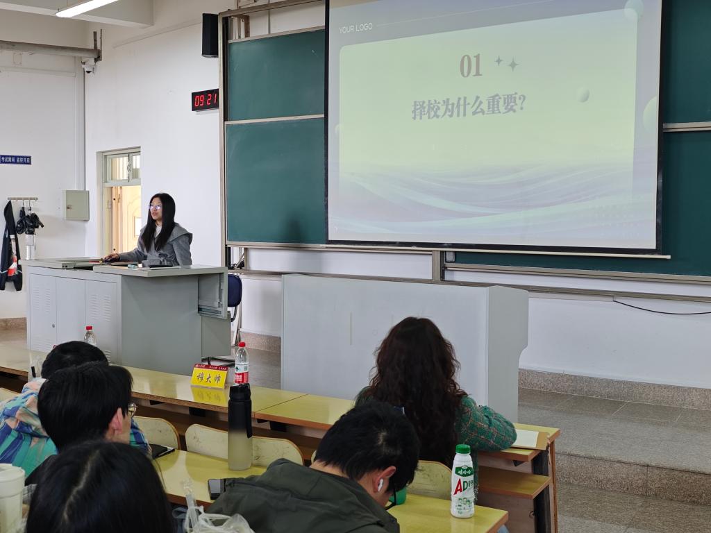 会议伊始,周守玉剖析了现阶段就业形势,结合校区、学院的升学、就业数据,就考研、出国出境、就业等进行逐项分析,建议学生一是科学认识自己,准确分析个人兴趣、性格、能力、价值观、学业成绩等方面,充分了解自己;二是准确判断形势,结合近年来校区、学院以及各专业升学就业情况,了解客观现实;三是理性选择目标,从主客观相一致的角度,积极整合资源,合理评估后确定目标;四是扎实推进行动,制定计划、长期坚持,奋力拼搏;五是寻找后盾支持,充分发挥辅导员、专业老师、父母、朋友等社会支持系统,给予帮助和支持。穆大帅结合具体案例分析了择校考虑的要素,并通过解析永利3544am登录官网相关专业报考路径、招生现状、学习内容、就业去向等实例,给予学生择校建议。